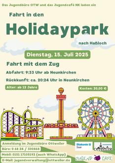 Es ist wieder soweit! Ein unvergesslicher Tag voller Action, Spaß und gemeinsamer Erlebnisse steht bevor: Am Dienstag, dem 15.07.2025, laden das Jugendbüro Ottweiler und das Jugendcafé Neunkirchen zu einer spannenden Fahrt in den Holidaypark nach Haßloch ein.