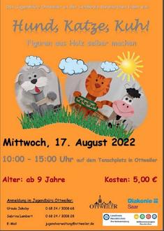 Das Jugendbüro Ottweiler lädt gemeinsam mit dem Jugendbüro des Landkreises, Kinder ab 9 Jahren dazu ein, lustige Tiere aus Holz zu gestalten.