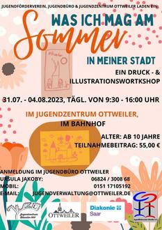 Ganz nach dem Motto „Was ich lieb am Sommer“ (und auch in meiner Stadt) werden die gesammelten Themen in Comics, Illustrationen und Drucke umgesetzt. Ihr könnt dabei den gesamten Prozess von der Idee zum Entwurf, der Umsetzung der Druckvorlagen und dem Drucken bis zu fertigen Produkten (wie einem T-Shirt, Postkarten, usw.) erleben. Die beiden ReferentInnen, Illustratorin Isabelle Jasten und Jan Sahner, den viele schon von einigen Graffiti-Projekten kennen, helfen euch bei jeder einzelnen Station und vermitteln verschiedene Erzähl- und Zeichentechniken, sowie verschiedene Varianten in der Umsetzung der Drucktechniken.