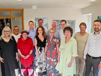 Aber es ging noch weiter: Unter der Überschrift „Wortspuren“ stellte Landrat Sören Meng sein Werk „50 Wortspuren - Geschichten und Gedichte“ vor. Schließlich kommt es mit dem Event „Kunst & Wein - das passt fein!“ zu einem Erlebnis mit Live-Musik von Guiseppe Notarigo. Margit Bauer inszenierte zudem Bodypainting mit Susanne Ebinghaus.