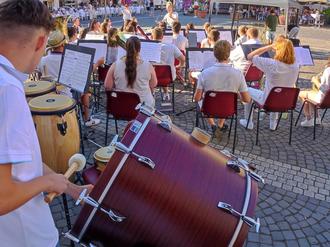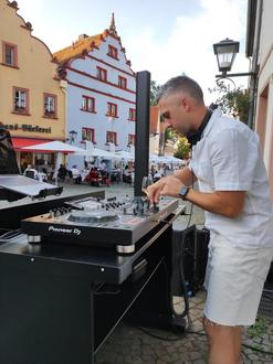 Auf dem Schlosshof sorgten das Kreisjugendorchester und später Dominik Engel am Saxophon sowie sein DJ Emanuele für Musik. Gleichzeitig brachte DJ Calvin Leek auf dem Rathausplatz die Menge zum Feiern.