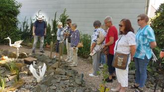 Pflanzen, Kräuter und Heilpflanzen bescherten immer wieder Eindrücke aus dem Land der Bibel. Entlang dem Ufer vom Toten Meer mit seinen Kakteen sowie am See Genezareth mit dem Moseskörbchen im Schilf führte der Weg weiter vorbei an Altären in Israel, an der Himmelsleiter und weiter durch den Kloster- und Kräutergarten mit Geschichte der Kirche. In ihr endete unser „biblischer Rundgang“, und Herr Pfarrer Werner gab uns schließlich noch interessante Erläuterungen zum Innenraum der gotischen Kirche.