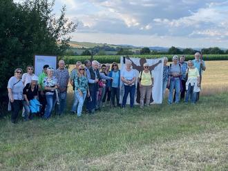 An der Marienkapelle angekommen, die aber leider verschlossen war, gab es eine kurze Rast, bevor es wieder in Richtung Stennweiler weiterging. Hinter den Gärten der Häuser verlief der Weg mit beeindruckenden Weitblicken. Man konnte den Schaumberg im Abendlicht sehen. Auch die Höfe des Faulenberges waren zu sehen. Weitläufige Getreidefelder wechselten sich mit Wiesen ab.