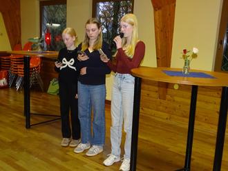oder eines Königs in der Tradition des französischen „Galette des rois“. Um diese Tradition zu würdigen, trugen Clara Coberger, Rahel und Ida Zimmermann die Geschichte der Heiligen Drei Könige vor.
