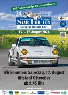 Die Stadt Ottweiler begrüßt die Internationale Saar-Lor-Lux Classique am Samstag, dem 17. August 2024, um 09:45 Uhr, auf dem Schloßhof. Klaus Lambert stellt die einzelnen Fahrzeuge und ihre Fahrer kurz vor, ehe diese nach St. Wendel weiterfahren. Davor und danach sorgt die Kombo „Jazz for Fun“ an diesem Samstagmorgen für gute Unterhaltung. Verantwortlich für das Rendez-vous mit den exklusiven Oldtimern ist das Stadtmarketing Ottweiler.