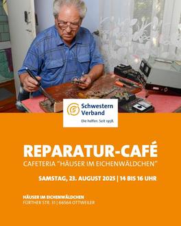 Das nächste Reparatur-Café steht wieder vor der Tür! Doch diesmal gibt es eine Besonderheit: Wie im letzten Jahr, findet dieser Termin am Sa. 23.08. in der Cafeteria der „Häuser im Eichenwäldchen” (Fürther Straße 31, ehemals „Seid Getrost“, von Ottweiler kommend Richtung Steinbach fahrend) vom saarländischen Schwesternverband statt. Die Cafeteria befindet sich vom Parkplatz kommend rechte Hand. Aber keine Sorge: Wir werden einen Kundenstopper aufstellen, sodass die Cafeteria gut zu finden sein wird. Die Uhrzeit ist nach wie vor von 14 - 16:00 Uhr. Kommen Sie gerne mit Ihren elektronischen Haushalts(klein)geräten, Ihren Fahrädern, Ihren Modeleisenbahnen, Ihren Kleidern, die geflickt werden müssen, usw. vorbei. Sollten Sie sich anmelden wollen, so rufen Sie hierfür einfach Herrn Beck unter der 0177 501 3429 oder schreiben Sie eine Mail an reparaturcafe.ottweiler@gmail.com. Vielen Dank an die „Häuser im Eichenwäldchen“ für die Einladung!