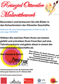 Am Freitag, dem 13. und am Samstag, dem 14. September 2024, wird in Ottweiler wieder die Kampagne „Heimat shoppen“ gestartet. Sie soll zeigen, dass der Einkauf vor Ort Lust und Laune machen kann. In den teilnehmenden Geschäften werden Kundinnen und Kunden in besonderer Weise begrüßt oder mit einer kleinen Überraschung bedacht. Für die Kampagne unterstützen der Gewerbeverein, die Wirtschaftsförderungsgesellschaft im Landkreis Neunkirchen und die Stadtverwaltung Ottweiler den Handel, das Handwerk und das Gewerbe.