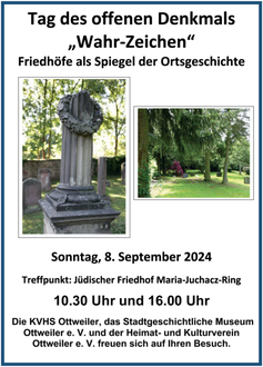 Die Widerspiegelung „authentischer Geschichten der Vergangenheit in die Gegenwart“, zugleich „Denkmale pesönlicher Wahrzeichen“, ermöglichen zwei nebeneinander liegende Friedhöfe in Ottweiler: der Jüdische Friedhof und der sog. „Paritätische Friedhof“. Diese „Denkmale in der ihnen immanenten Rolle als verlässlich und empirisch fassbare Monumente und Kulturzeugnisse vergangener Zeiten“ ruft die KVHS Ottweiler in Verbindung mit dem „Stadtgeschichtlichen Museum Ottweiler e. V.“ sowie dem „Heimat- und Kulturverein Ottweiler e. V.“ in Erinnerung.
