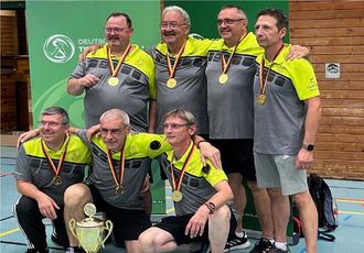 Im Finale hieß dann der Gegner nicht wie erwartet Eintracht Frankfurt sondern 1. KSC Kulmbach. Der 1. KSC Kulmbach hatte den Top-Favoriten im Penalty-Schießen bezwungen. Wie in der Vorrunde war ein heißer Kampf zu erwarten. Als Gastteam musste Doppel 1 zuerst am Tisch des Gegners ran. Lawall/Treinen fühlten sich gegen das Topdoppel des Gegners, Yücel/Freitag, am Leonhart sichtlich wohl. Mit einer spielerisch sehr guten Leistung blieben sie immer dran und krönten die Leitung mit einem verdienten Sieg. Auch am Bonzini war es eine enge und bis zum Schluss spannende Kiste. Der 5:3 Sieg brachte gleich die Führung zum 2:0. Kurtz/Lux überzeugten am Bonzini mit einem deutlichen Sieg. Am Leo zogen sie allerdings gegen Kießling/Keller den Kürzeren. Das 1. Einzel war gekennzeichnet mit knappen Siegen für die Heimteams. Seisenberger gegen Peter endete somit 1:1. Manfred Lang kämpfte und kämpfte, musste sich im 2. Einzel aber an beiden Tischen dem Ex - Nationalspieler Redel knapp beugen. Und wieder stand es 4:4 unentschieden. Cornelius/Peter entzauberten Yücel/Freitag am Leo. Der folgende Sieg am Bonzini brachte die erneute Führung; 6:4. Doppel 4 dominierte am Bonzini und setzte sich klar mit 5:2 durch. Im Bewusstsein, dass ein weiterer Sieg am Leonhart bereits den vorzeitigen Sieg bedeutet, gingen Lawall/Treinen den 2. Satz entsprechend motiviert und konzentriert an. Kießling/Keller fanden kein Mittel gegen eines der besten Doppel des Wochenendes. Die WM Bronzemedaillengewinner von 2019 gewannen den 2. Satz mit 5:3 und für das Team den Matchpunkt zum vorzeitigen 8:4 Finalerfolg. Groß war der Jubel der OTC Oldies über den ersten Deutschen Mannschaftsmeistertitel für den Residenzclub. Der Medaillensatz der "Altsenioren" des OTC Ottweiler, Josef Cornelius und Wolfgang Lawall, ist nach Silber in 2014, Bronze in 2017 und Gold in 2022 nunmehr komplett. Oldies but goldies!