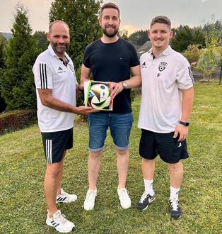 Im Vorfeld des letzten Ligaspiels der Bezirksligamannschaft der FSG Ottweiler/Steinbach an der Kirmes überreichte der Ottweiler Ortsvorsteher Alexander Weiß einen neuen Spielball.