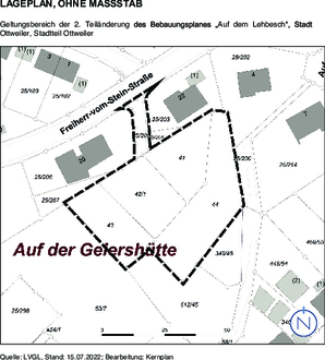 Im nördlichen Siedlungsgebiet von Ottweiler, südlich der Freiherr-vom-Stein-Straße, befinden sich unbebaute Flächen. Auf diesen sollen nun die planungsrechtlichen Voraussetzungen zur Realisierung von Wohnbebauung geschaffen werden. Das Plangebiet grenzt im Norden direkt an die Wohnbebauung der Freiherr-vom-Stein-Straße an. Über diese Straße soll auch die Haupterschließung des Gebietes erfolgen.