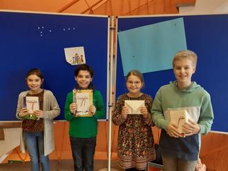 Aus den beiden vierten Klassen gingen in diesem Jahr an den Start: Kenzyra Pogmann, Jakob Scheidhauer und Leonie Thome aus der Klasse 4.1 von Frau Jochum und Luisa Dingert, Vincent Getrey, Niklas Jung und Luisa Raber aus der Klasse 4.2 von Frau Stoll.