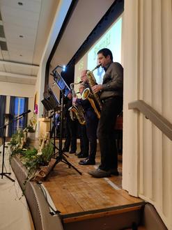 In Ergänzung der Wortbeiträge führte eine reichhaltig bebilderte Powerpoint Präsentation durch den offiziellen Teil des Abends. Auf der Leinwand zu sehen waren bekannte Bauwerke, gekrönte Häupter, Maler und Komponisten verschiedener Epochen, aber auch Motive aus Ottweiler. Dazu korrespondierte ein musikalisches Arrangement der Musikschule der Stadt, das seinerseits die früheren Zeiten Revue passieren ließ. Die Leitung für die musikalischen Darbietungen übernahm in bewährter Weise Karl-Gerd Schäfer, verantwortlich für die Musikschule der Stadt Ottweiler. Flöten erklangen. Saxophonspieler begeisterten, und sogar der Konzertflügel der Stadt Ottweiler kam zum Einsatz, dies mit Nocturne von Chopin. Die Moderation begleitete Bürgermeister Schäfer. Die Gelegenheit zum geselligen Beisammensein ist im Anschluss an den offiziellen Teil rege genutzt worden. Einige Stunden später klang diese außergewöhnliche Geburtstagsparty aus. Sie wird in guter Erinnerung bleiben.