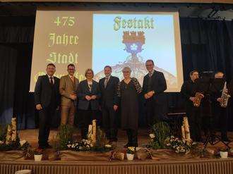 In Ottweiler fand eine außergewöhnliche Geburtstagsparty statt. Aus Anlass der Verleihung der Stadtrechte durch Kaiser Karl. V beziehungsweise der Übergabe eines Freiheitsbriefes im Jahr 1550 hatte Bürgermeister Holger Schäfer zum Festakt in das Schloßtheater eingeladen, und vielen waren der Einladung zum Stadtjubiläum gefolgt. Auf dem offiziellen Programm standen Grußworte von Ministerpräsidentin Anke Rehlinger, Innenminister Reinhold Jost, Landrat Sören Meng und eine Festrede von Oberbürgermeister Prof. Dr. jur. Ulli Meyer, Präsident des Saarländischen Städte- und Gemeindetages. Die Festrede fand eine ausgesprochen gute Resonanz. Aber auch alle Grußworte kamen entsprechend an. Die Ehrengäste überbrachten die besten Wünsche und stellten die Besonderheit der Stadt an der Blies heraus. Ihnen und den übrigen Gästen dankte der Bürgermeister für ihr Kommen. Sein Vorgänger im Amt, Bürgermeister a. D. Hans-Heinrich Rödle, konnte der Einladung nicht folgen. Seine Frau Lore Lösch-Rödle trug das Grußwort vor.