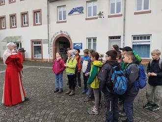 Die Kinder der Klasse 4.2 der Grundschule Neumünster beschäftigten sich schon seit Wochen mit ihrer Heimatstadt Ottweiler. Nachdem sie im Unterricht schon einiges über die Entstehung der Stadt und die Herkunft des Namens erfahren haben, ging es abschließend zur Besichtigung in die Stadt. Gemeinsam mit ihrer Lehrerin Frau Burger nahmen sie an einer mittelalterlichen Stadtführung teil.