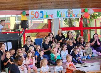 Dieses besondere Jubiläum wurde am 1. Oktober 2023 mit den Kindern und deren Familien, mit Ehemaligen und allen, die sich mit der Kita verbunden fühlen, gefeiert.