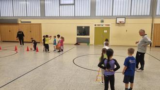 Die HSG Ottweiler/Steinbach bot für alle Klassen der Grundschule Neumünster ein Schnuppertraining an. Nach dem Aufwärmen übten die Schülerinnen und Schüler, angeleitet durch die Trainer, den Umgang mit dem Handball. Die Kinder prellten, warfen und fingen den Ball bei unterschiedlichen spielerischen Übungen und machten sich so mit dem Sportgerät vertraut. Ein abwechslungsreicher Parcours beinhaltete viele handballspezifische Techniken und selbstverständlich kam auch der Spaßfaktor nicht zu kurz