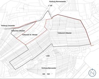 Die genauen Grenzen des Geltungsbereiches des Bebauungsplanes sind dem beigefügten Lageplan zu entnehmen. Er umfasst insgesamt eine Fläche von ca. 24,5 ha. Davon liegen ca. 20,2 ha im Gebiet der Stadt Ottweiler. (Die übrigen 4,3 ha befinden sich auf der Gemarkung der Kreisstadt St. Wendel.)