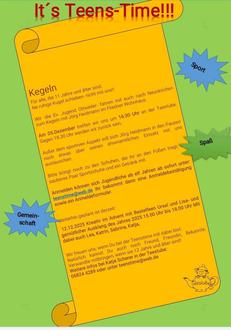 Infos in der Teestube unter 06824 4289, Anmeldung über teenstime@web.de