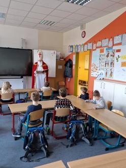 Am Freitag, 06. Dezember 2024, besuchte der Nikolaus die beiden ersten Klassen der Grundschule Neumünster. Mit langem Rauschebart und Bischofsstab stand er vor den Schulanfängern, die plötzlich alle ganz aufgeregt waren. Dank seines "schlauen Buches" wusste er genau, was die Kinder in den ersten Wochen in der Schule gelernt haben und ob sie auch alle brav waren.
