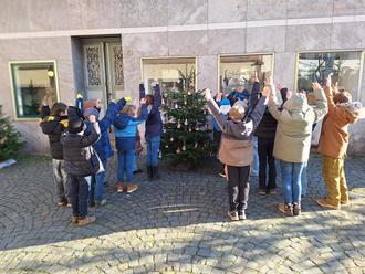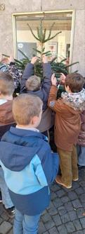 Nach dem Basteln ging es für beide Klassen in die Enggass, wo jeweils ein eigener Baum geschmückt werden durfte. Dort entstand ein wunderbar stimmungsvoller Anblick, der perfekt zum Ottweiler Weihnachtsmarkt passt und die Gasse in ein festliches Licht taucht.