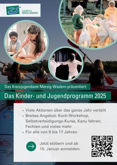 Die Jugendpflege des Landkreises Merzig-Wadern bietet 2025 wieder ein umfangreiches Kinder- und Jugendprogramm an: nicht mehr in gedruckter Form, sondern erstmals komplett online – inklusive Anmeldung. Ab Mittwoch, 08. Januar 2025, ist das vollständige Programm unter www.merzig-wadern.de/kjp verfügbar; die Anmeldung zu den Angeboten ist ab Mittwoch, 15. Januar 2025, 08.00 Uhr, möglich.