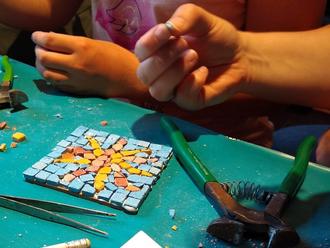 Bei dem Mitmachmodul „Mosaiklegen“ sind Geduld und Fingerspitzengefühl gefragt. © Archäologiepark Römische Villa Borg