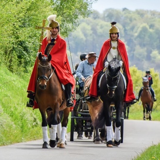 Die traditionelle Pferdeprozession zu Ehren des heiligen Quirinus führt die Reiter und Kutschen durch die schönen Weinberge bei Perl und Sehndorf. Tolle Ausblicke auf das Moseltal und das grenzenlose Dreiländereck sind garantiert.