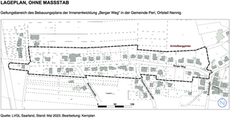 Jedermann kann den Bebauungsplan der Innenentwicklung „Berger Weg”, bestehend aus Plan und Begründung, im Rathaus der Gemeinde, Trierer Straße 28, 66076 Perl, Bauamt, während der allgemeinen Dienststunden einsehen und über dessen Inhalt Auskunft verlangen.