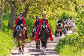 | - | die Reiter, Kutschfahrer und Pferde, angeführt von der Quirinusdarstellerin Anna Wehr |