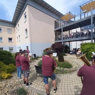 Am vergangenen Sonntag fand unsere diesjährige Maitour statt. In diesem Jahr zogen wir durch die Straßen von Besch. Wir begannen unseren Rundweg um 08.00 Uhr am Maibaum. Von da ging es quer durch Besch, mit Zwischenstopps an verschiedenen Stationen. Zum Abschluss besuchten wir die Bewohner des Altenheimes St. Franziskus, die mit viel Begeisterung unserer Musik lauschten.
