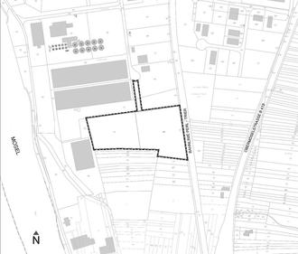 Übersichtskarte mit Darstellung des Geltungsbereichs des vorhabenbezogenen Bebauungsplans „Besch Industriegebiet – 1. Änderung“, ohne Maßstab