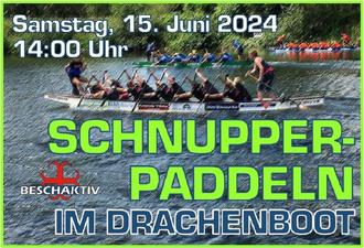 Besch Aktiv e.V. bietet am Samstag, 15. Juni 2024, um 14:00 Uhr am Bescher Bootsanleger das nächste Schnupperpaddeln im Drachenboot an. Anfänger wie Fortgeschrittene sind willkommen. Voraussetzung für eine Teilnehme sind ausreichende Schwimmkenntnisse, ein Mindestalter von 8 Jahren und eine Voranmeldung bis zum 13.06.2024 unter paddeln@besch-aktiv.de. Die Teilnahme ist kostenlos. Mehr Infos über Besch Aktiv unter www.besch-aktiv.de und www.facebook.com/besch-aktiv.