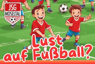 Du bist Jahrgang 2019 oder 2018 und hast Lust auf Fußball? Dann komm zum Training der G-Jugend der JSG-Moseltal am Mittwoch, 26. Juni 2024 um 17.00 Uhr auf dem Sportplatz in Perl. Du kannst deine Freunde treffen, dir alles anschauen und mitmachen. Deine neuen Trainer stehen für deine Fragen bereit oder vorab per Mail: manuel.gliedner@jsg-moseltal.de