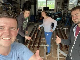 Die Mitglieder des Jugendclubs Tettingen-Butzdorf beim Streichen der Bankhölzer.