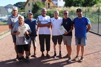 Das im Rahmen des diesjährigen Kewelsberg-Pokalturniers ausgerichtete Boule-Turnier des VfB Tünsdorf war ein voller Erfolg. Bei bestem Sommerwetter fanden sich neben den 12 Triplette-Mannschaften auch zahlreiche Zuschauer auf dem Boule-Gelände neben dem Sportplatz ein. Sie sahen spannende Begegnungen, bei denen die Spielfreude und der Spaß am Boule-Sport im Vordergrund standen. Nach der Vorrunde hatten sich die beiden Herrenmannschaften aus Faha und Tünsdorf für die Finalspiele qualifiziert. Im Spiel um Platz 3 setzte sich die zweite Mannschaft des Gastgebers gegen die zweite Mannschaft aus Faha knapp mit 13:11 durch. Im Finale drehten die Gäste dann den Spieß um. Die erste Mannschaft der Boule-Freunde Faha bezwang die erste Mannschaft des VfB Tünsdorf mit 13:9 und wurde somit verdienter Turniersieger.