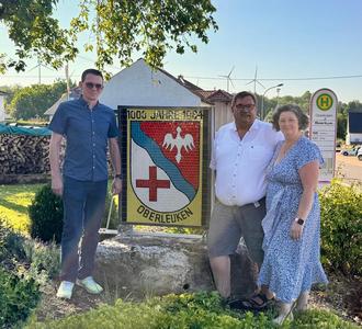 Das traditionsreiche Wappenschild mit der Aufschrift „1000 Jahre Oberleuken - 1964“ erstrahlt wieder in neuem Glanz. Seit seiner Aufstellung zur Tausendjahrfeier im Jahr 1964 ist es ein sichtbares Symbol der Geschichte Oberleukens und ein markanter Willkommensgruß am Ortseingang.