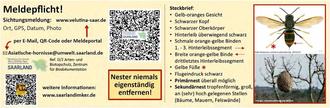 Die seit 2020 im Saarland nachgewiesene Vespa velutina kommt aus Asien und ist in der EU als invasiv eingestuft (vgl. sog. „Unionsliste“). Invasiv bedeutet, dass sie aufgrund ihrer Lebenseigenschaften bestehenden Ökosystemen außerhalb ihres natürlichen Verbreitungsgebiets und der Landwirtschaft gefährlich werden kann. Aufgrund ihrer Einstufung ist sie meldepflichtig (EU-Verordnung Nr.1143/2014, Art. 16 und 17).