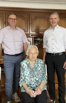 Frau Rosa Bastian feierte kürzlich ihren 97. Geburtstag. Bürgermeister Uhlenbruch und Ortsvorsteher Hoffmann überbrachten die Glückwünsche der Ministerpräsidentin, der Landrätin, der Gemeinde Perl und aller Bürgerinnen und Bürger von Büschdorf.