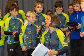 Rund 9 Jahre nach der Vereinsgründung durften wir am vergangenen Sonntag im Perler Vereinshaus unseren ersten Deutschen Meister Titel feiern und auf eine herausragende Saison 2025 zurückblicken. Julius Klose aus Mannebach hat es geschafft. Er ist Deutscher Meister in der olympischen Cross-Country Disziplin in der Altersklasse U17. Das ist aber noch nicht alles! In der Kategorie U15 konnte sich Luis Greifeldinger die Bronzemedaille bei der Deutschen Meisterschaft sichern. Beide konnten außerdem bei der Europameisterschaft in Schweden Top 10 Platzierungen einfahren und zählen damit zu den stärksten Nachwuchsfahrern auf europäischer Bühne. Mehr geht nicht? Doch! Übertroffen wurde das Ganze noch von der Nominierung zu den europäischen olympischen Jugendspielen in Nordmazedonien für Julius Klose. Hier konnte der junge Sportler aus Mannebach auf höchstem internationalem Niveau den 5. Platz erreichen. Gründe genug für eine tolle Jahresabschluss- und Nikolausfeier im Kreise unserer MTB School Racer und ihrer Eltern. In einer kleinen Talkrunde mit unserer Leistungsgruppe und dem Hausherren Bürgermeister Ralf Uhlenbruch wurden dann auch weitere herausragende Ergebnisse unserer MTB School Sportler in der Mountainbike Bundesliga (1x Platz 1 Sebastian Molnar, 1x Platz 2 Julius Benning, 2x Top 10 Elias Werle) oder bei der Deutschen Schulmeisterschaft (Platz 1 Anastasia, Melissa und Sebastian Molnar) genau unter die Lupe genommen. Besonders schön - auch bei den jüngsten konnten in diesem Jahr bereits erste Podiumsplatzierungen in der Saarlandliga zum Beispiel durch Fynn Kiefer, Marla Neusius, Oskar Arends oder auch Bastian Bauer eingefahren werden. Für die Zukunft sind wir also gerüstet und hoffen auf weitere tolle Erfolge. Nach der Talkrunde und den Grußworten des Nikolaus durfte Julius Klose sein offizielles „Deutscher Meister“ Trikot in Empfang nehmen. Im Anschluss gab es Nikolaus Geschenke für alle Kids, Betreuer und Trainer bevor es auf die große Saisonabschluss-Tour zum Perler Pumptrack ging.