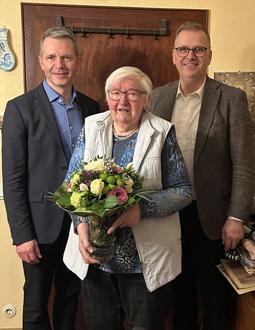 v.l.: Bürgermeister Uhlenbruch, Agnes Büdinger und Ortsvorsteher Hoffmann