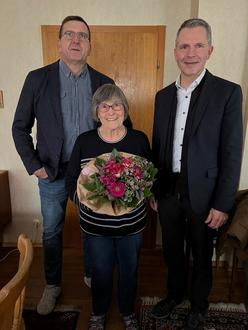 Bürgermeister Ralf Uhlenbruch und Ortsvorsteher Markus Hein gratulierten die Jubilarin im Namen der Gemeinde Perl und des Gemeindebezirks Perl.