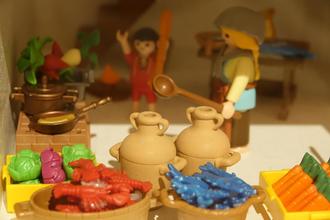 Eine römische Küche in der aktuellen Playmobil®-Ausstellung der Villa Borg. ©Archäologiepark Römische Villa Borg, Fotograf: Alexander Weisgerber
