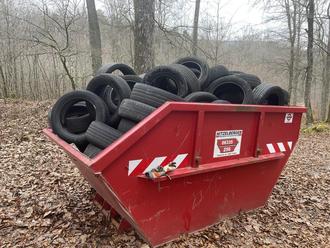 Die Autoreifen im Revier Lemberg füllen einen großen Müllcontainer - Foto: Landesforsten.RLP.de/Forstamt Westrich (honorarfrei)