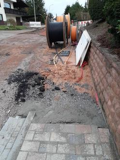 Auch die Strom- und Telekommunikationsleitungen werden zum Teil erneuert. Dabei wird direkt ein Leerrohr zur späteren Glasfaserversorgung im Gehwegbereich verlegt.