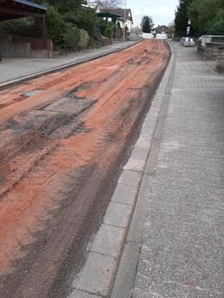 Im restlichen Teil des Ausbaubereichs wurde mittlerweile die Fahrbahn abgefräst. Außerdem wird die bestehende Bushaltestelle im Zuge der Sanierungsmaßnahme barrierefrei ausgebaut.