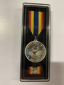 „In Anerkennung selbstlosen Einsatzes in Rheinland-Pfalz während des Hochwassers 2021 verleihen die Ministerpräsidentin des Landes Rheinland-Pfalz und der Staatsminister des Innern und für Sport die rheinland-pfälzische Fluthilfemedaille 2021.“