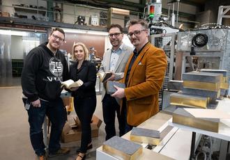 „Ich war beeindruckt, als ich beim Probelauf dabei sein durfte. Eines der vergoldeten Musterexemplare liegt als Andenken nun in meinem Büro. PMF ist eine Benchmark für hochspezialisierte Industriemaschinen. Die Goldschnitt-Maschine ist ein weiterer Beweis dafür“, so Miriam Heinrich, die Geschäftsführerin der Wirtschaftsförderungsgesellschaft Südwestpfalz.