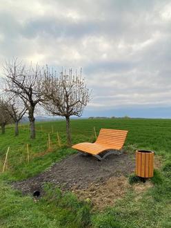 Auf dem Hahnenhügel, am Weg zum Tiergarten oberhalb der Streuobstwiese, wurde diese Woche eine Liegebank errichtet. Mit einem tollen Blick in die Natur lädt sie zur Rast ein. Es handelt sich dabei um eine Spende des Fördervereins Dorfgemeinschaft Bottenbach. Vielen Dank an den Förderverein Dorfgemeinschaft für die tolle Liegebank.