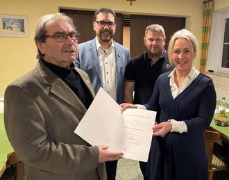 Foto: KV; v.l.n.r. Klaus Büchler, Bürgermeister Klaus Weber, Ortsbürgermeister Steffen Schwarz, Landrätin Dr. Susanne Ganster